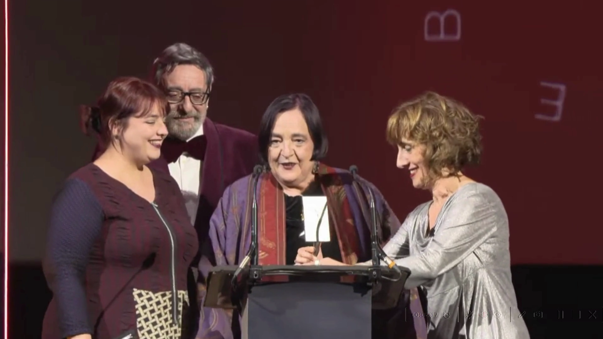 La gala ha tenido lugar el martes 11 de noviembre en el Cine Capitol de Madrid. Hizo entrega del Premio de Teatro y Danza Paz Santa Cecilia, directora del INAEM del Ministerio de Cultura, que apeló a la labor de producción de los vestuarios, que son parte muy importante de las artes escénicas.