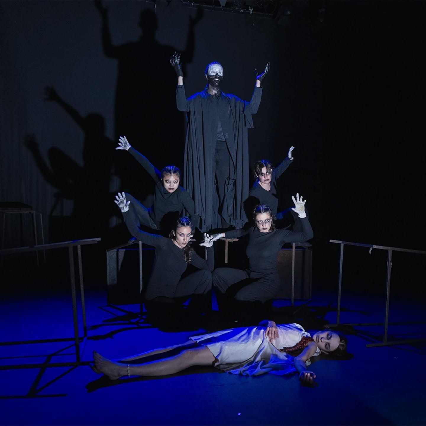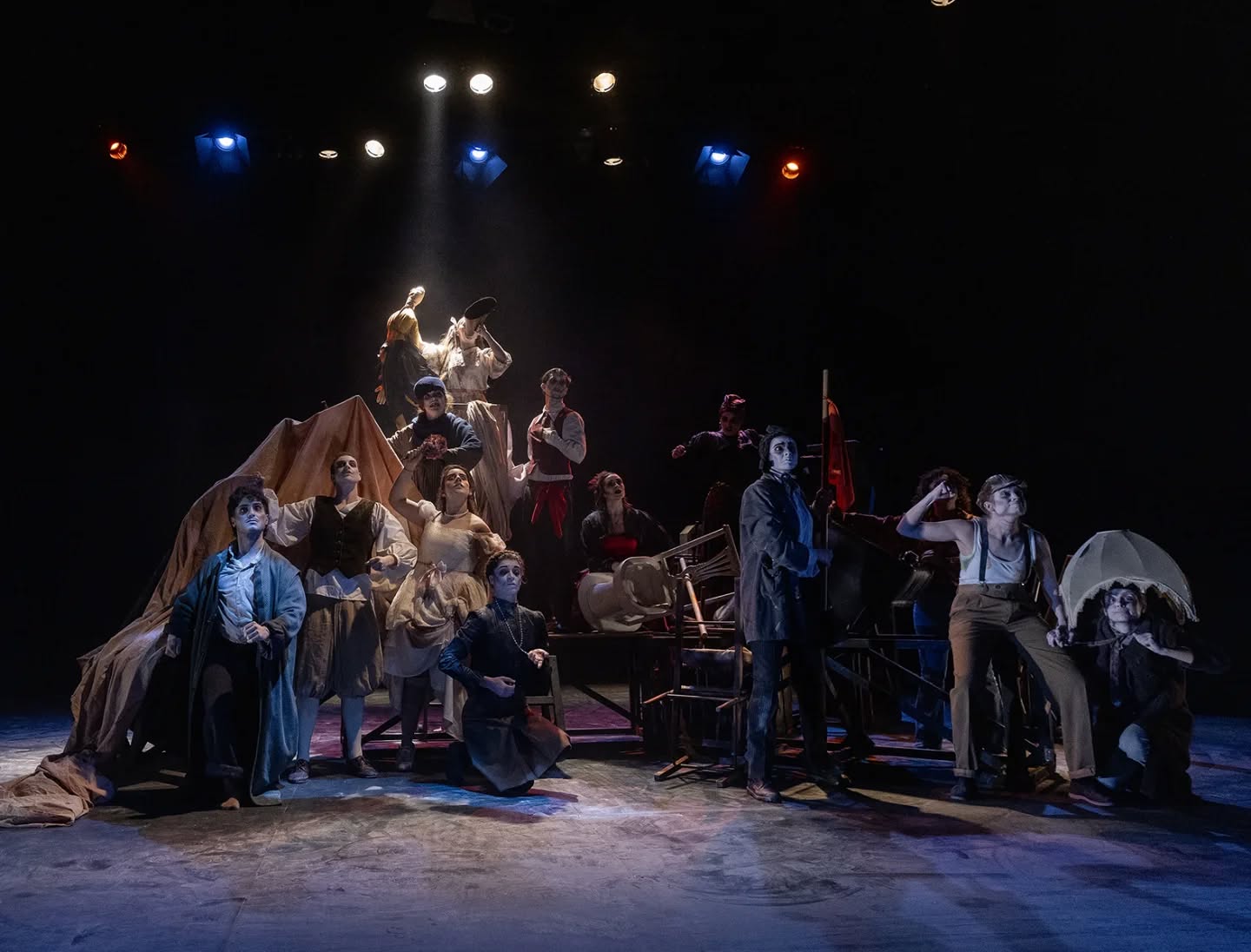 Su primer espectáculo, “Ni muertos”, ha sido concebido y desarrollado en su totalidad por el equipo artístico de la compañía. La pieza nos sitúa en un excéntrico bar habitado por almas perdidas que han convertido ese espacio en su hogar eterno. Sin embargo, ni siquiera la eternidad garantiza la calma: la aparición de un simple papel desencadena un conflicto que pone en cuestión todo lo construido.